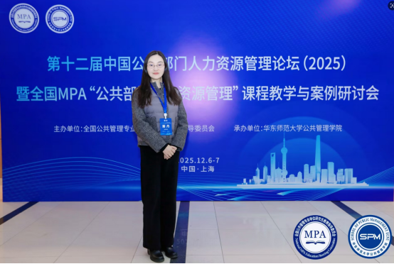 12月6日至7日,第十二届中国公共部门人力资源管理论坛暨全国MPA“公共部门人力资源管理”课程教学与案例研讨会在华东师范大学隆重举行。本次论坛由全国公共管理专业学位研究生教育指导委员会主办、华东师范大学公共管理学院承办,聚焦“数智时代公共部门人力资源管理的理论前沿与实践创新”,吸引了全国超百所院校的学者、授课教师参与。我院副院长蒋丹教授参加了本次研讨会,并与专家学者们就课程创新等进行了深入交流。