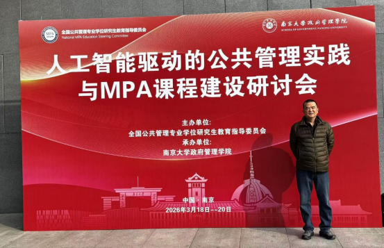 3月18日至20日,由全国公共管理专业学位研究生教育指导委员会主办、南京大学政府管理学院承办的“人工智能驱动的公共管理实践与MPA课程建设研讨会”在南京召开。本次研讨会紧扣时代发展与学科建设需求,聚焦人工智能在公共管理领域的应用实践与MPA专业课程改革创新两大核心方向,汇聚了全国160所高校公共管理领域的280余名专家学者与一线教学骨干。我院万宏副教授参加了本次研讨会。